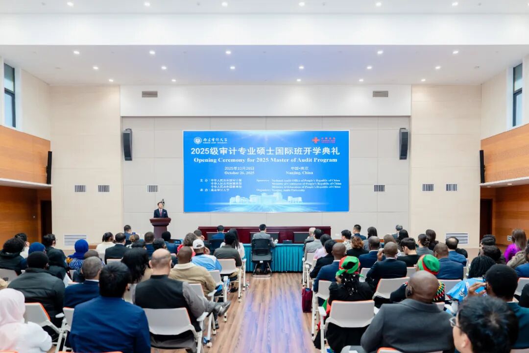 On the morning of October 25, the opening ceremony for the 2025 International Class of the Master of Audit Program at Nanjing Audit University was held at the Audit Academy of CNAO. Attendees included Vice President of the Academy of International Business Officials (AIBO) of the Ministry of Commerce Liu Rutao, ; Deputy Director General of the Department of International Cooperation of the CNAO Zhou Xun, Overseas Dean of Nanjing Audit University and former Director General of the World Intellectual Property Organization,Francis Gurry, along with Party Secretary of Nanjing Audit University Dong Birong, President of Nanjing Audit University Lu Hualiang as well as Vice president Li Qianwen and Jiang Hai. All international students of the 2025 International Class for the Master of Audit Program participated the ceremony.