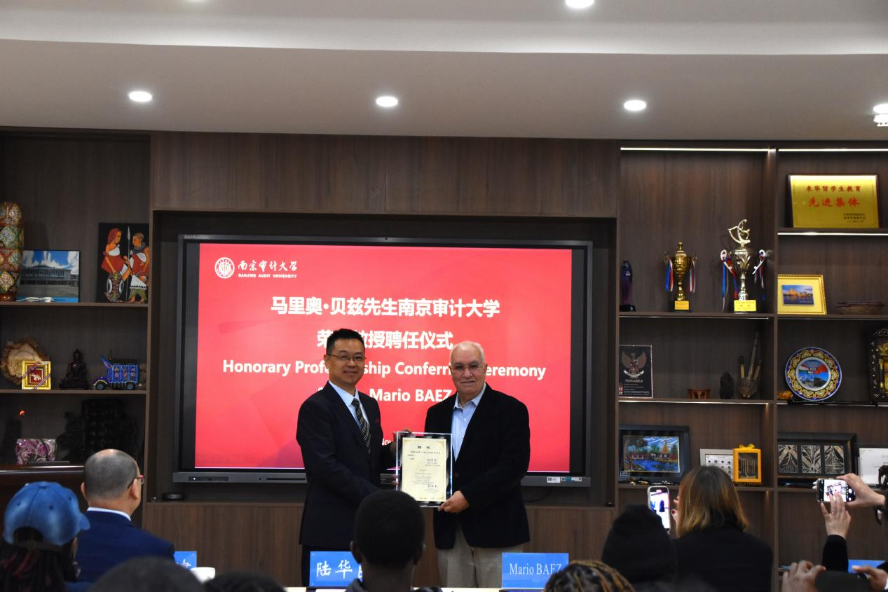 From November 24th to 28th, Mario Baez, former chief accountability officer at the United Nations, visited our university. He was appointed as an honorary professor of Nanjing Audit University and engaged in a week-long series of exchange seminars. On November 24th, the appointment ceremony was held at the School of International Students.